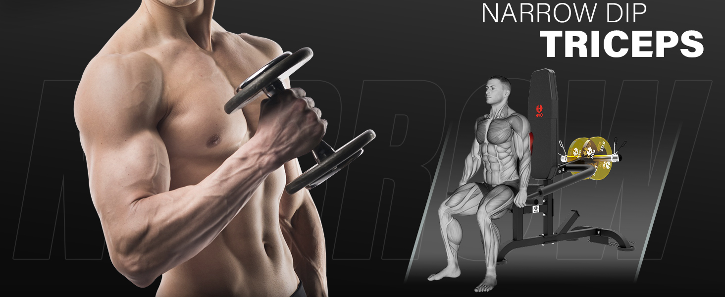 HVO Seated Dip Machine Tricep: Machine for Biceps Plate Loaded Strength Training Equipment Workout Black 1Pc